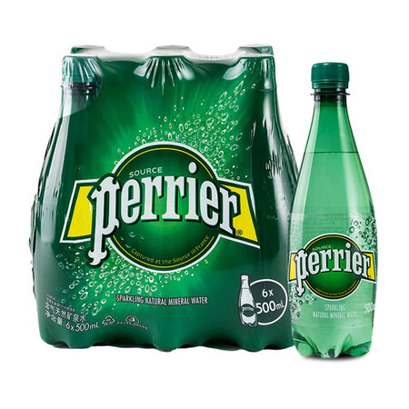 法国原装进口 巴黎水(Perrier)天然含气矿泉水 原味气泡水500ml*6 瓶